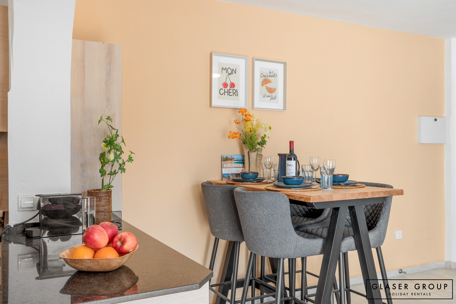 La cocina independiente está completamente equipada con una placa de inducción, horno, microondas, lavavajillas, cafetera, hervidor, tostadora y todos los utensilios de cocina esenciales, perfecta tanto para estancias cortas como largas.