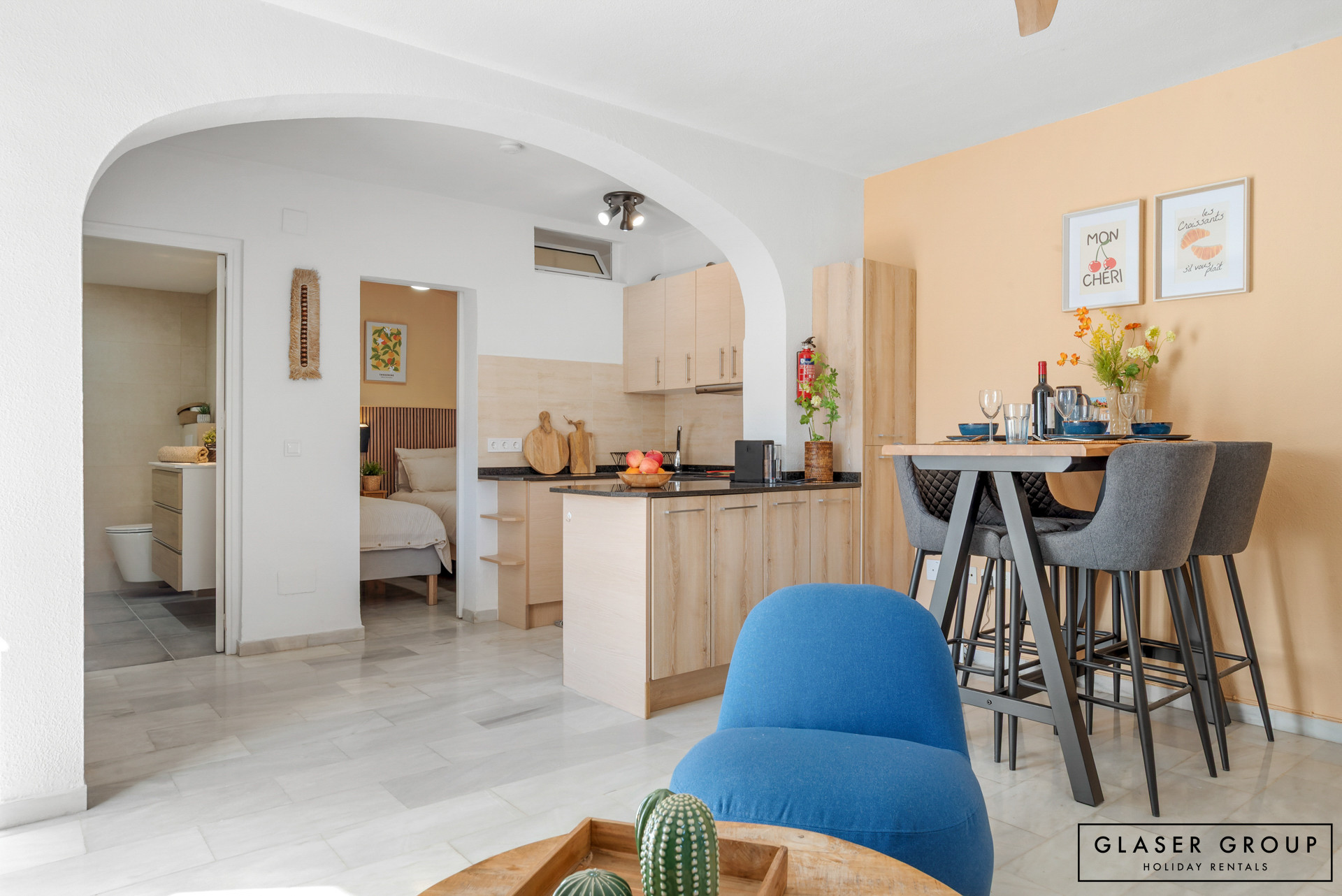 Gelegen binnen het charmante complex Pueblo Evita, zult u omringd zijn door architectuur in Andalusische stijl en een ontspannen sfeer. Het gebied biedt gemakkelijke toegang tot stranden, restaurants en lokale bezienswaardigheden, waardoor het een ideale uitvalsbasis is voor zowel een ontspannen vakantie als het verkennen van de kust.