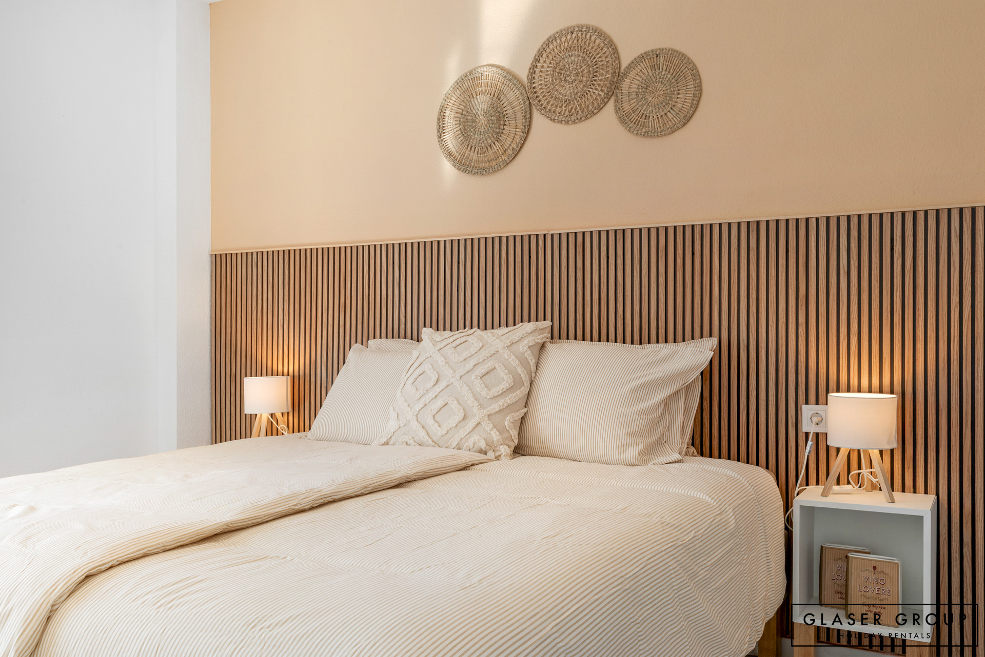 Het appartement biedt comfortabel onderdak aan maximaal 4 gasten in twee slaapkamers, met een tweepersoonsbed en twee eenpersoonsbedden. Er is een moderne badkamer met een inloopdouche, ontworpen voor gemak en comfort.