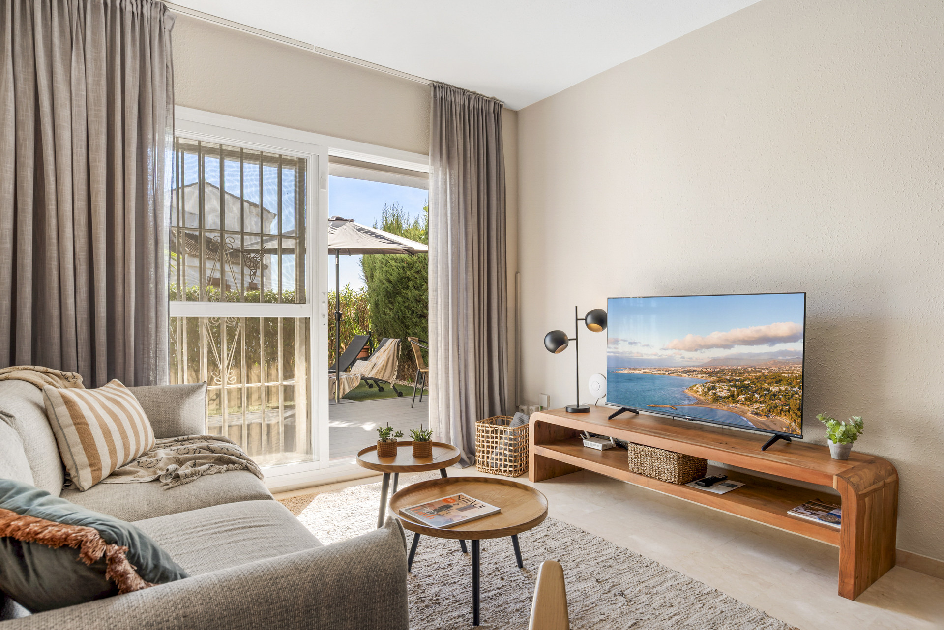 Ontdek dit gezellige en lichte appartement in Riviera del Sol, gelegen in de rustige urbanisatie van Calahonda, Mijas, ideaal voor stellen, gezinnen of kleine groepen die willen ontspannen en genieten van de levensstijl aan de Costa del Sol.