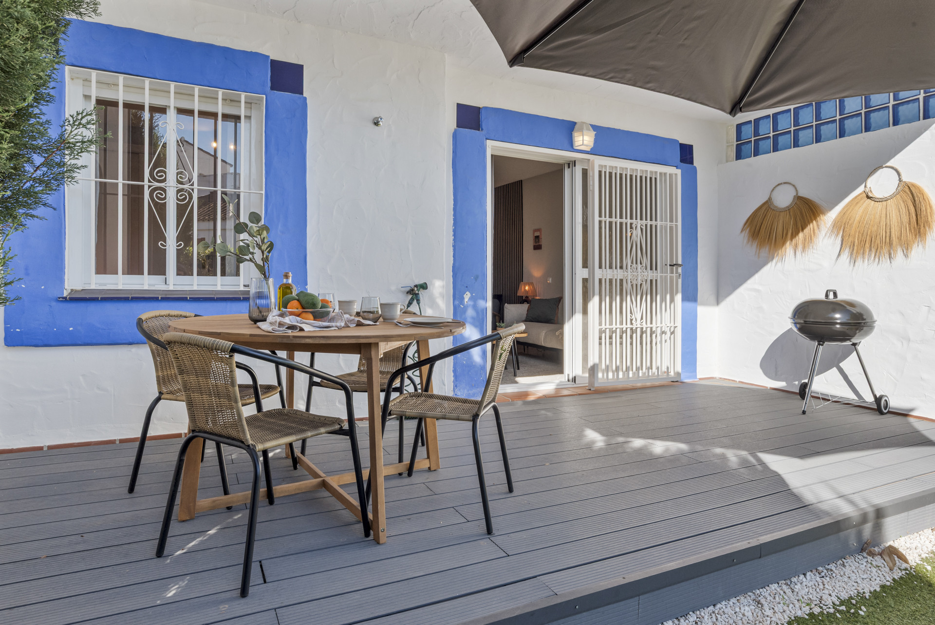 One of the main features of the property is its spacious private terrace of 28.56 m², a perfect space to relax and enjoy the sun. It has two sunbeds for sunbathing, a barbecue area and outdoor furniture, ideal for having breakfast outdoors, reading peacefully or enjoying a drink at sunset. A truly authentic corner to rest and disconnect.